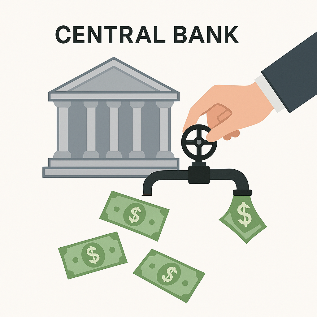 중앙은행(예: 미국 연준)이 금리를 조정하거나 통화량을 관리하여 경제 안정을 추구하는 정책입니다.